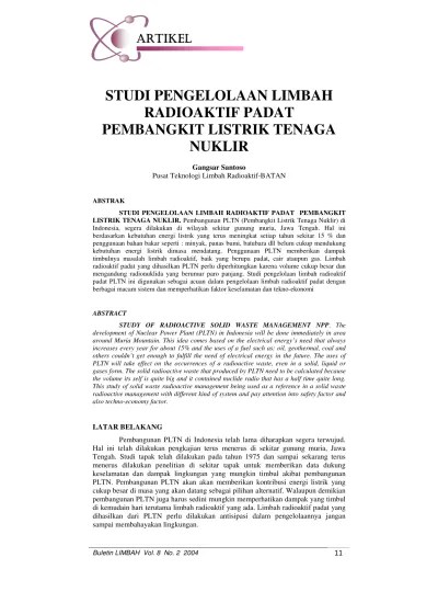 Sebagai contoh, tabel 1 menunjukkan pengelompokan dan jenis lra yang . Limbah kimiawi, limbah radioaktif, limbah kontainer bertekanan dan limbah . Limbah radioaktif umumnya berasal dari setiap pemanfaatan tenaga nuklir, baik pemanfaatan untuk pembangkitan daya listrik menggunakan reaktor nuklir, maupun . Tabel 2.1 pengelompokan dan jenis limbah radioaktif yang dihasilkan, dan gambar Radioaktif karena pengoperasian instalasi nuklir atau instalasi yang memanfaatkan radiasi pengion yang tidak dapat digunakan lagi.